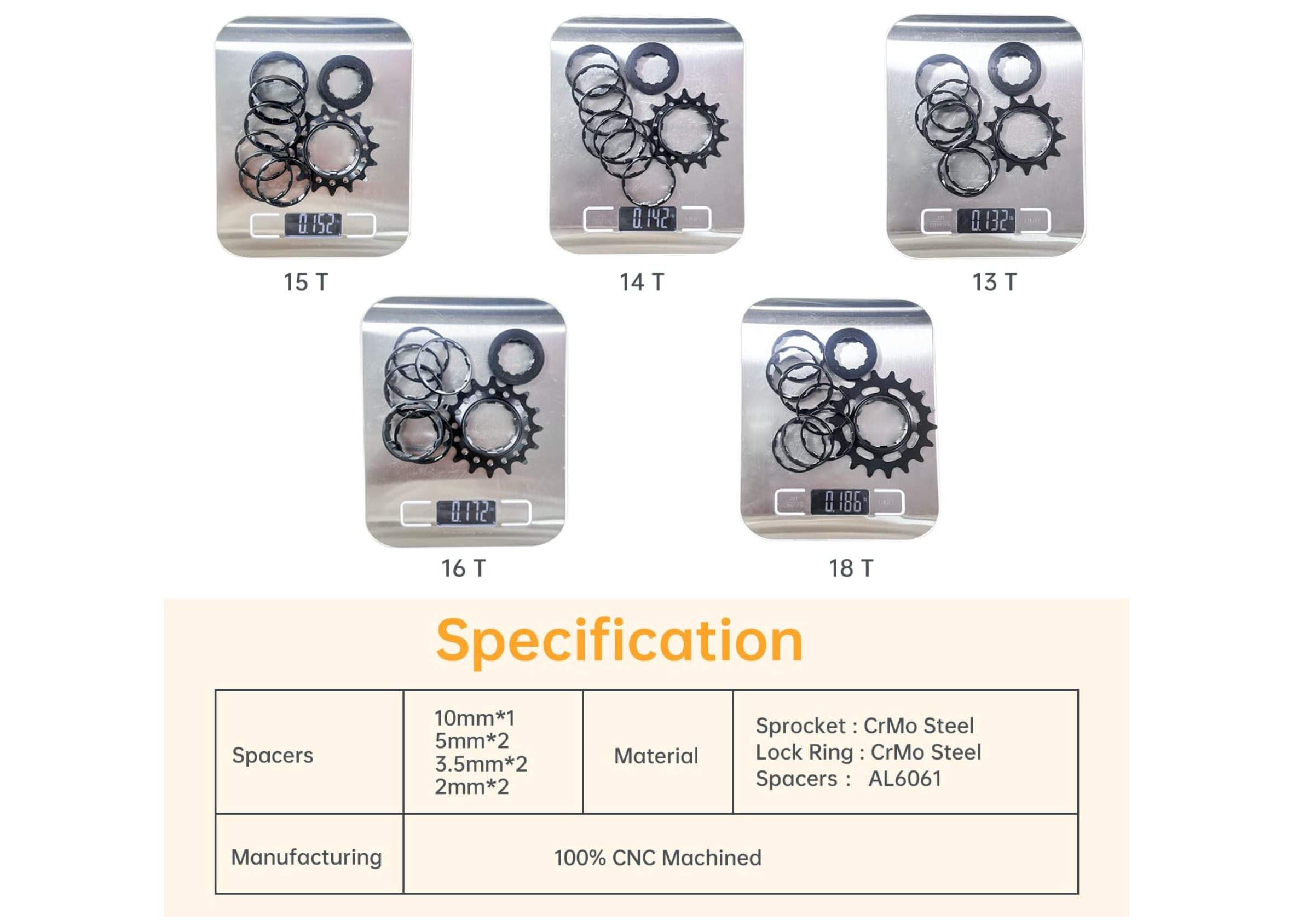 Sinlge Speed Cassette Sprocket Conversion kit for Fixie BMX Dirt Jump MTB Bike 13T-18T